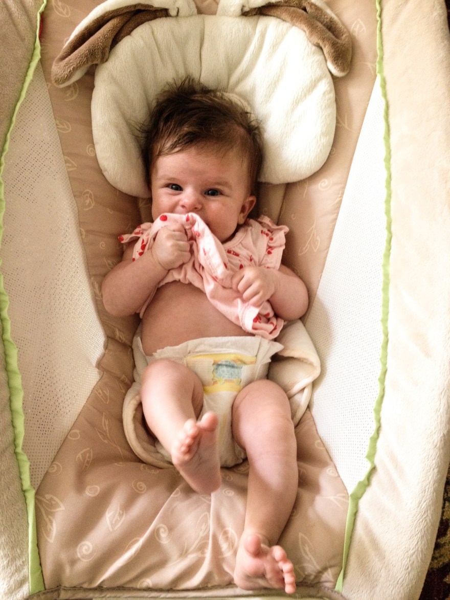 She’s a girl who likes to talk, babbling first thing in the morning and right before bed. She already seems to understand that her soft, girly “ooohs” make her parents melt, and how her vocal “YARS!” send us running straight to her. She’s a long, skinny string-bean who looks just like her Dad, which can only mean, that, to balance the scales, (in the least scientific way possible) she will most likely develop my personality. And if that’s true, then I guess my Mom is right: payback is a… tough one!